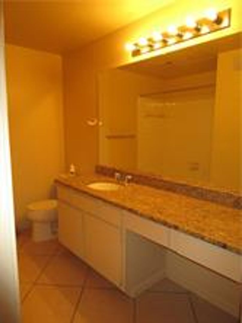 You can park in your own garage, walk up the inside tiled stair way to this open floor plan. Kitchen work area faces the dining room and living area, as well. There is a fireplace in the family room. What a view, from the patio you are able to view the pool area. Inside you have tiled living and eating areas. The bedrooms at split, each with its on full bath. There are ceiling fans thru-out. Both bedrooms offers ample storage in over sized closets. Pets may be considered on case-by-case basis.